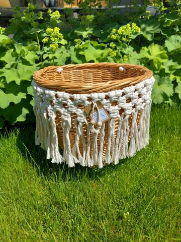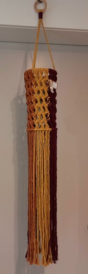 Gemaakt in de kleur paars met houten ringen en houtje touwtje.