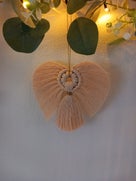 Gemaakt in de kleuren terracotta / ecru / taupe / oker / roze met blanke kralen.