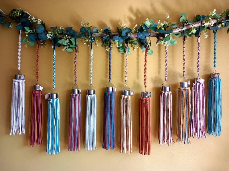 Gemaakt in veel verschillende kleuren met blanke kralen. Ingepakt.
